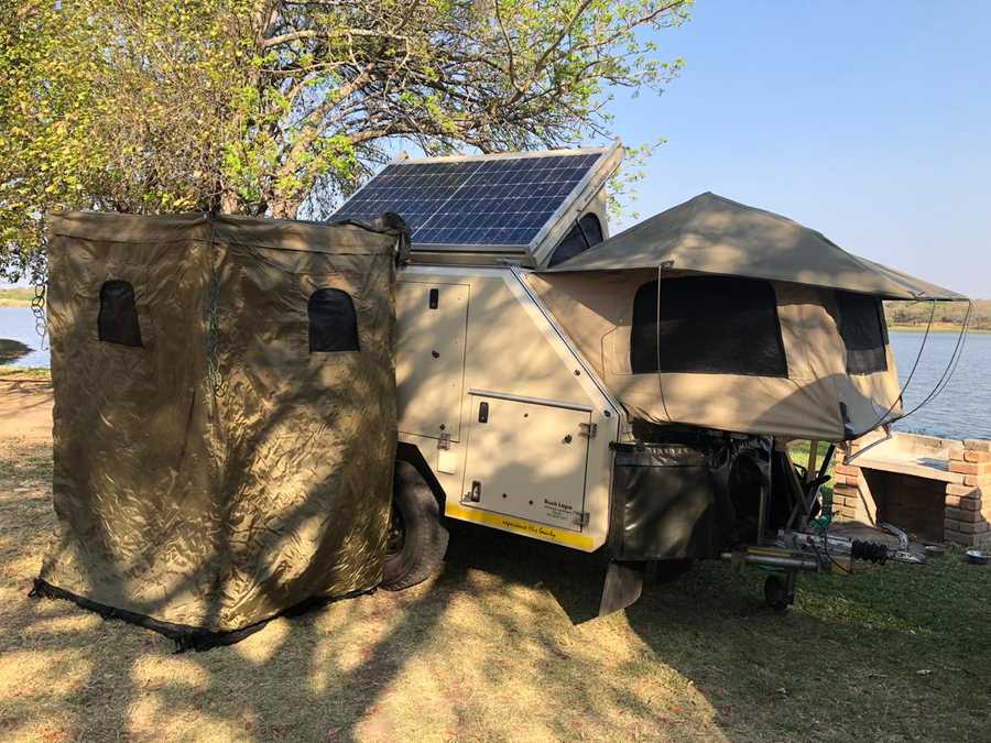 Compact and clever - everything you need for a comfortable Kruger stay. A tough, compact off-road caravan built for African adventures. Quick to set up, fully equipped with kitchen and water tank, and comfortable for couples or small families. Compact, dustproof, and off-grid ready - the perfect safari companion.
