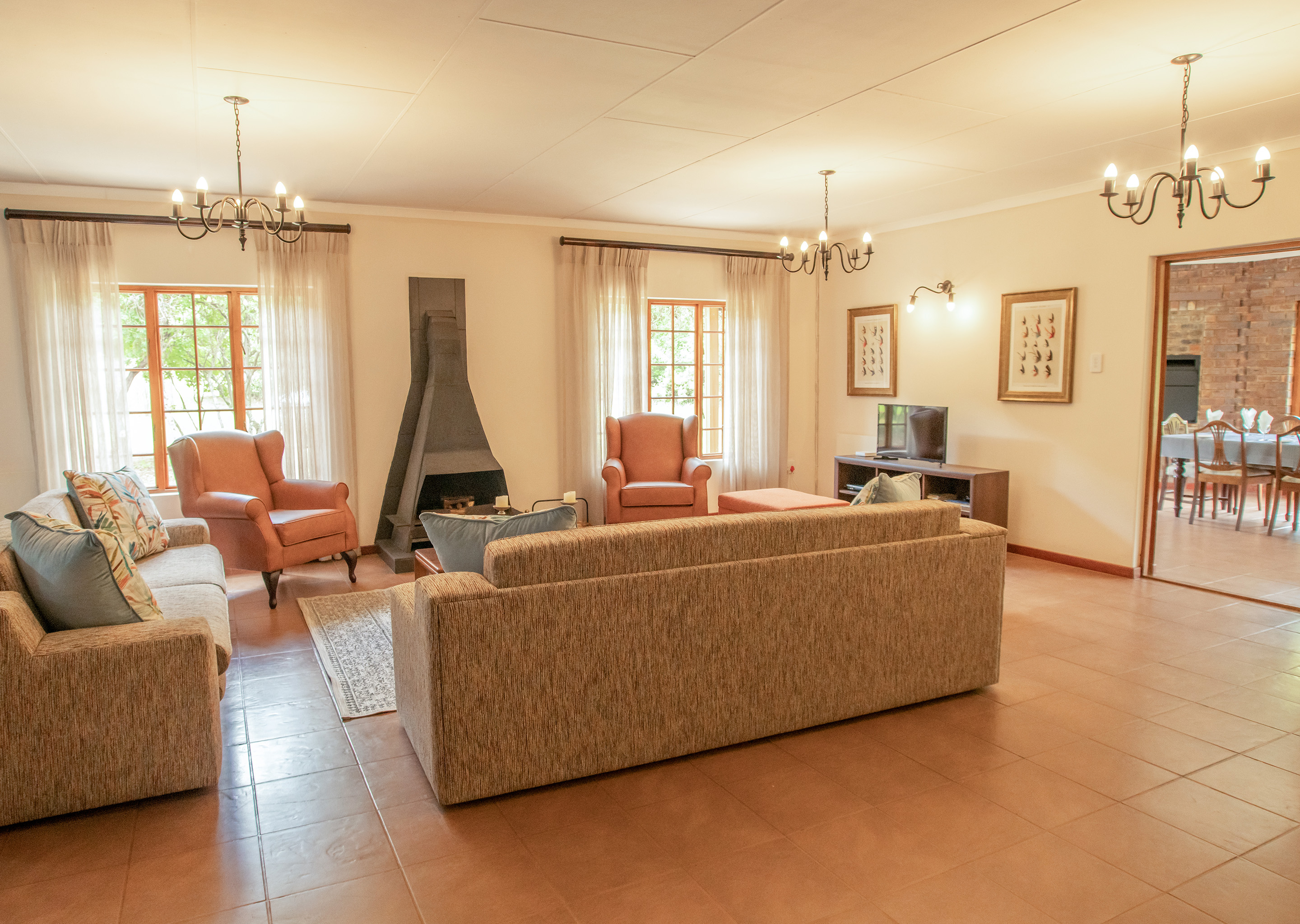 Charges: Housekeeper gratuity is compulsary at R200.00 per weekend or equivalent amount for a midweek. Fishing rods and Flys for hire at R75 per rod per day.