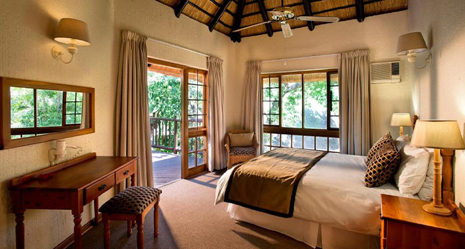 On the banks of the Sabie River, between Hazyview and the Kruger National Park, this luxury lodge offers a multitude of activities ranging from fishing to outdoor chess. The luxury self-catering chalets, each with braai, patio and undercover parking offer the perfect base for exploring Mpumalanga s numerous tourist attractions. A 9-hole golf course is situated on-site, but keep the ball out of the water as the dam is home to hippos and crocodiles Kruger Park Lodge s leisure desk offers a myriad of services, activities and things to do including transfers from the airport, daily and evening safaris to the Kruger National Park and cross-border day trips to Mozambique and Eswatini (Swaziland).